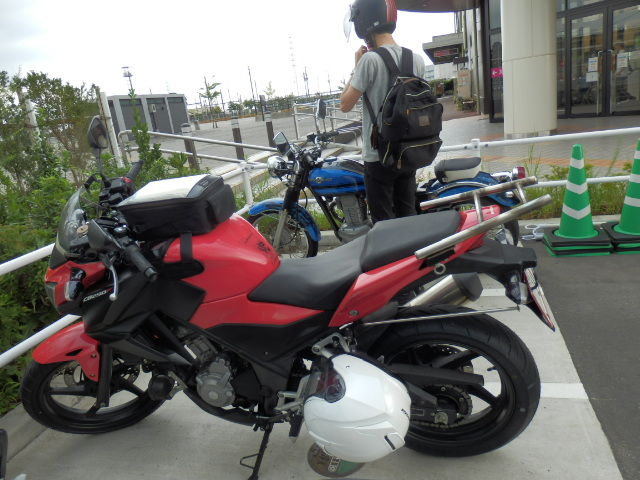 何とか雨には降られませんでしたが、やはり暑さで参ってきました。吉川美南のイオンに立ち寄って水分補給をすることにしました。ほぼ同時に来た彼は、セパレートシート仕様のカワサキエストレヤでした。大切に乗られているようです。