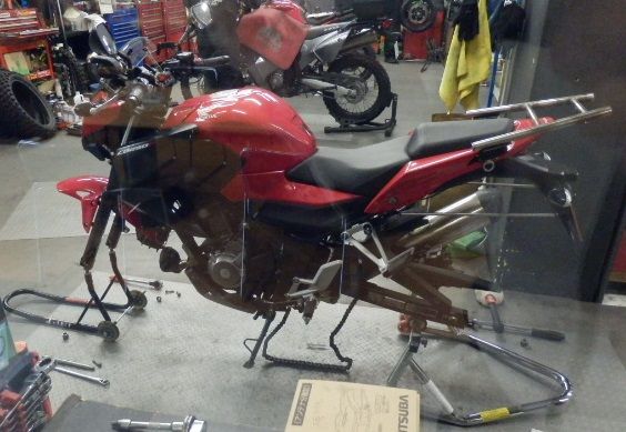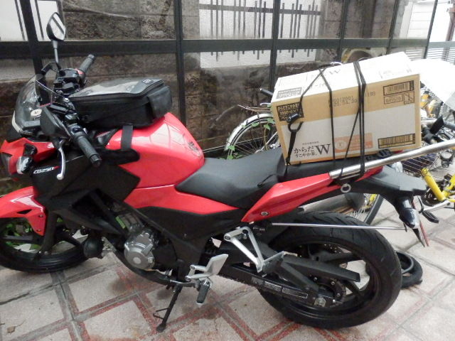 先日タイヤ交換をしたCB250Fですが、まだ走行距離は25㎞程度です。ツーリングシーズン前に、安心して走れるように皮むきをしておきましょう。