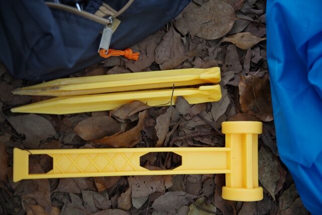 ペグがプラスチック製なのは想像通りでしたが、まさかのプラハンマーが出てきてびっくり。