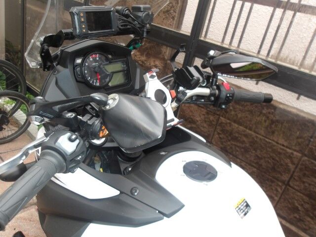 昨年秋にV-STROM650を購入し、ミラーを替えようかと思って純正ミラーに戻してCB250Fを下取りに出したのですが、このVスト君なかなかミラーが良くてわざわざ替える意味を感じませんでした。面積も大きいし、十分横に張り出しているのでまったく困ることがなかったのです。