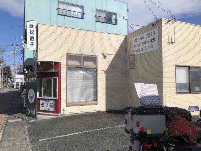 9時30分過ぎ、計画通りに渚園を出発。そして10時ちょうど。開店とほぼ同時に浜松餃子のテイクアウト専門店、こんがり屋に到着。自宅まで5時間はかかると言うと、冷凍餃子の方が良いとのこと。40個買いました。保冷バッグもお願いし、中にサービスで冷凍ペットボトルを入れてくださいました。このお店は田子のニンニクを使っていたりと良心的な作りで、その割に値段も安いと思います。