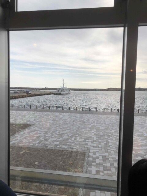 このレストランは窓から海が見えるのです。風がものすごく強かったのですが、海はさほど荒れていないように見えました。