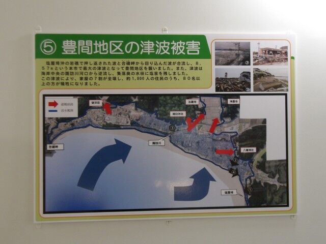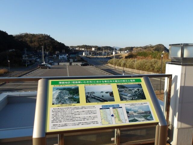 受付で300円支払います。そしてここへ来た訳といきさつを話すと、受付の係員は詳しくご存じで、いくつかの情報を頂けました。えびすやさんのこともご存じで、従業員一同屋上へ避難したので全員無事だったこと、そこで撮影した津波の写真が展示されていること、(これは先ほど見てきましたね。)豊間がいわき市では最も被害が大きかったこと、などを教えてくださいました。