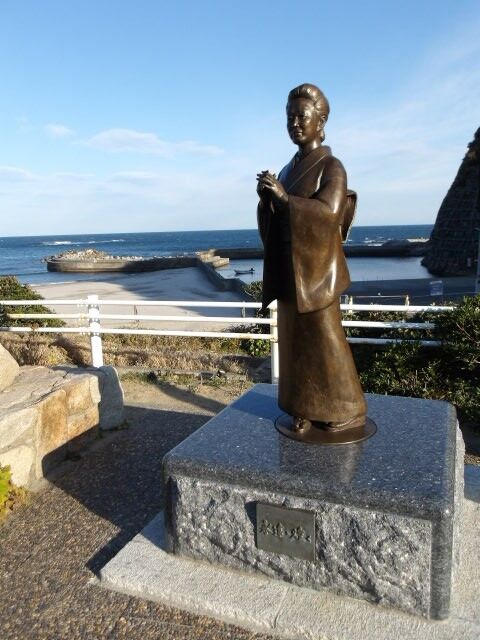 塩屋崎を歌った、みだれ髪の碑です。作詞の星野哲郎はえびすやさんに長逗留していて、その時に書いたのがこの詩なのだそうです。